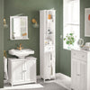 Det to skab med døre og en skuffe giver plads nok til dit badeværelse tilbehør