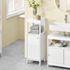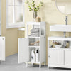 De åbne hylder giver god plads til håndklæder, sæber og andre badeværelsesartikler, mens hylden bag døren har justerbar højde for fleksibel opbevaring.