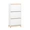 Den moderne kombination af hvid og naturlige trædetaljer passer ind i mange forskellige indretningsstile. Fremstillet af slidstærke materialer, tilbyder dette skoskab både holdbarhed og funktionalitet til daglig brug.
